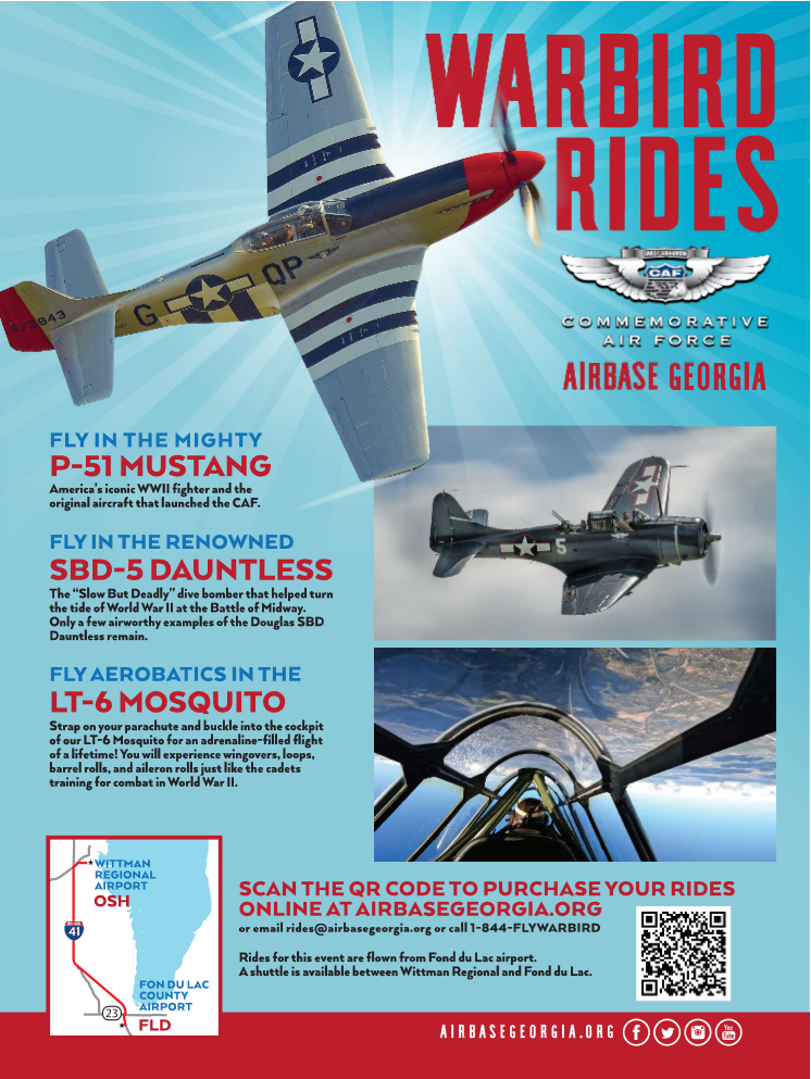 You can see our Corsair, Mustang, Kingcobra, and Dauntless on display at AirVenture 2026! Rides will be available in the P-51, SBD, and LT-6 at the Fond du Lac airport.
